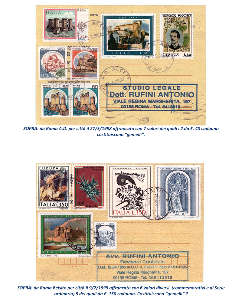 Memorie di un anziano collezionista di storia postale (LXX parte): AFFRANCATURE FILATELICHE SU AVVISI DI RICEVIMENTO |