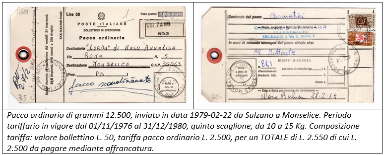 Altre immagini: http://portalepacchi.it/cgi-bin/selectDB.cgi?bollettinoCatalogo=137a Il bollettino 137b illustrato nella figura sotto è partito in data 8 settembre 1979. Colore a parte, esso è identico al 137a.