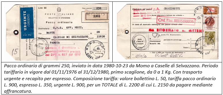 Aggiungo che non sono noti bollettini bilingue con facciale da L. 20. Ovviamente se qualcuno dovesse averne in collezione saremo felicissimi di pubblicarli. Infine, piccola curiosità, i Mod. 253 e 253-A sono le etichette applicate a cavallo tra il corpo del bollettino e la ricevuta che riportavano il numero del pacco. I Mod-253 sono stampati su carta bianca (pensati per pacchi senza assegno) e riportano sempre un numero pari. I Mod. 253-A sono stampati su carta rossa (pensati per pacchi con assegno) e riportano sempre un numero dispari.
