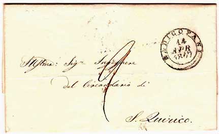 di Posta, e di arrivo S.QUIRICO 15 APR 1847.