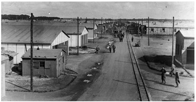 Figura 6 - Veduta aerea dello Stalag X-B di Sandbostel. (Coll. V.P.) Ritornando al campo di prigionia in cui arrivò il Sig. Cavazzini, lo Stalag X-B ospitò militari di numerose nazionalità: inglesi, americani, sovietici, francesi, belgi e italiani.