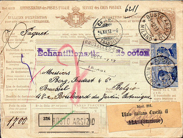 La Tessitura Ajroldi & Pozzi, poi Società Anonima, è stata fondata nel 1863, precedendo quasi tutti i numerosi insediamenti industriali di Busto Arsizio che, a cominciare dagli anni Settanta dell’Ottocento, hanno condotto la città a diventare uno dei poli più importanti dell’industria cotoniera e meccanica italiana. L’azienda ha operato attivamente per oltre un secolo, dapprima con sede in Via Dante 14 di fianco al Teatro Sociale, e poi in Piazza Plebiscito confinante con Via Dante. Per quanto riguarda i perfin, stando alle attuali conoscenze la ditta li ha usati dal 1909 al 1934. La perforazione è rimasta sempre la stessa A.&P. per tutto il periodo d’utilizzo.