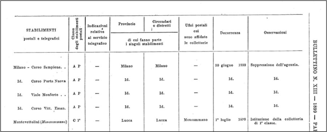 Bullettino postale n. XIII, 1899 (ora online in ISSP di Prato).