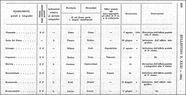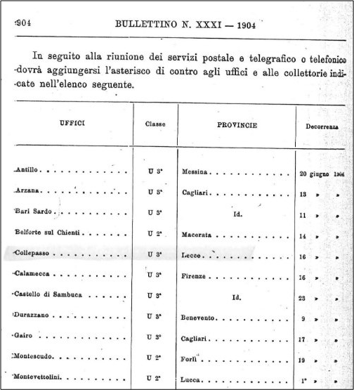 Bullettino postale n. XXXI, 1904 (ora online in ISSP di Prato).