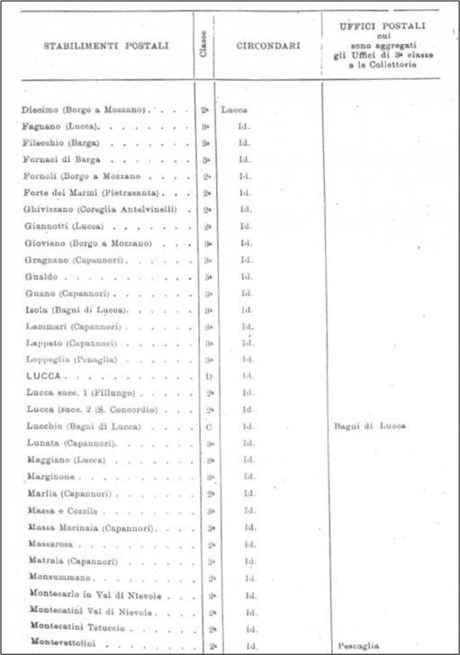 Elenco uffici postali del 1900 (ora online in ISSP di Prato).
