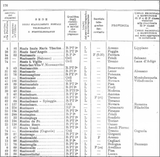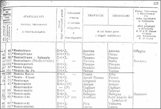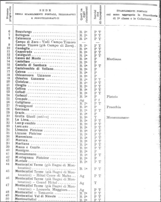 Elenco degli uffici postali del 1930 (ora online in ISSP di Prato).