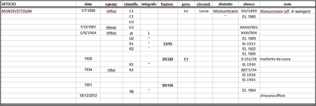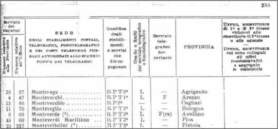 Elenco degli uffici postali del 1938 (ora online in ISSP di Prato).