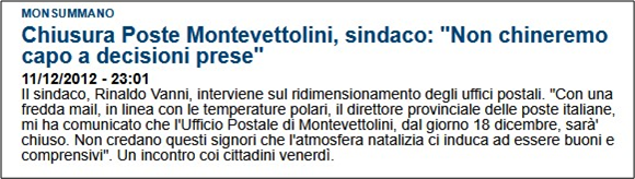 Particolare di cartolina anni quaranta del Novecento. L’uomo a sinistra è appoggiato alla porta dell’ufficio postale (immagine tratta da Ebay). È stato investito dall’ondata delle chiusure programmate da Poste Italiane nel 2012 e nonostante gli interventi a più livelli è stato comunque chiuso nel dicembre di quell’anno.
