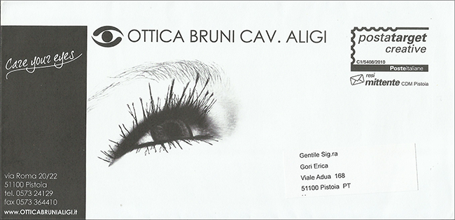 Lettera raccomandata da Prato in data 24.5.00; in arrivo timbro lineare FATTO AVVISO ZONA N.29 Esempio di busta commerciale tramite POSTA TARGET di Poste Italiane con eventuale “resi al mittente”