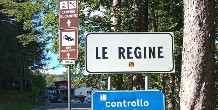 La località di Le Regine, posta a 1250 m. slm, dista 2,37 chilometri a sud dal medesimo comune di Abetone di cui essa fa parte.