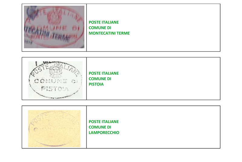 AGGIORNATO AL 18/11/2025. Nuove segnalazioni in verde e sostituzione immagini. Abbiamo suddiviso la schedatura dei timbri ovali di franchigia del territorio pistoiese seguendo lo schema cronologico di utilizzo, così come individuato da Alcide Sortino, mutuandone anche la dizione. All’interno del criterio temporale, la sequenza è in ordine alfabetico per località. Enrico Bettazzi