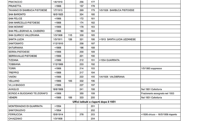 | Il “NUMERO A FRAZIONE” in provincia di Pistoia Elenco degli uffici con numero frazionario |