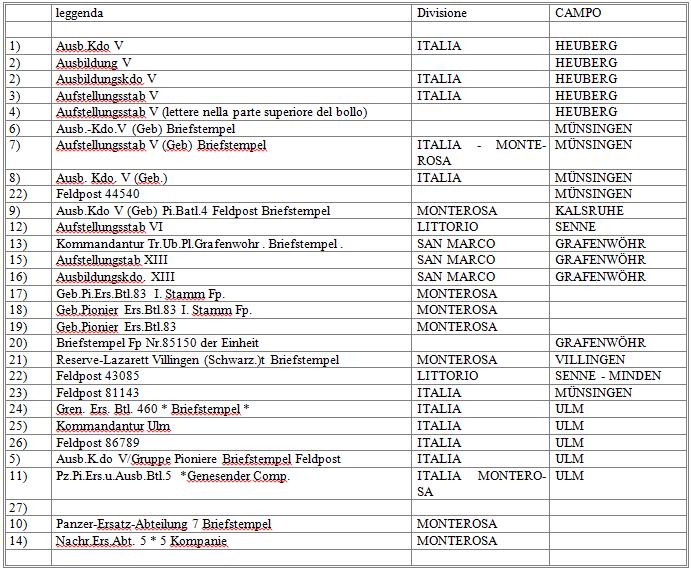 Inoltre, sempre per gli usi delle costituende 4 divisioni, risultano assegnati i seguenti numeri di Feldpost: