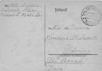 Vi è poi un'altra categoria di corrispondenze, provenienti da reparti delle Divisioni, spedite con la posta civile in Italia.