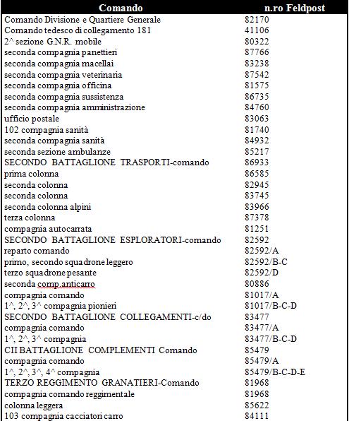 Alla fine di marzo 1944 alla unità vengono assegnati i numeri di Feldpost della serie 80.000 e man mano che i re-parti si costituiscono il mittente segnalava il proprio numero nella missiva.
