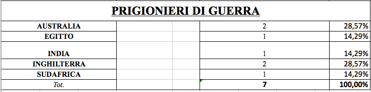 Caso ambiguo sono le corrispondenze indirizzate ai prigionieri di guerra italiani in mano alleata: non si tratta di corrispondenze inviate a civili residenti in stati esteri, ma di militari italiani detenuti dalle potenze avversarie, soggetti a speciali tariffe d’inoltro. Per questa ragione sono stati censite a parte.