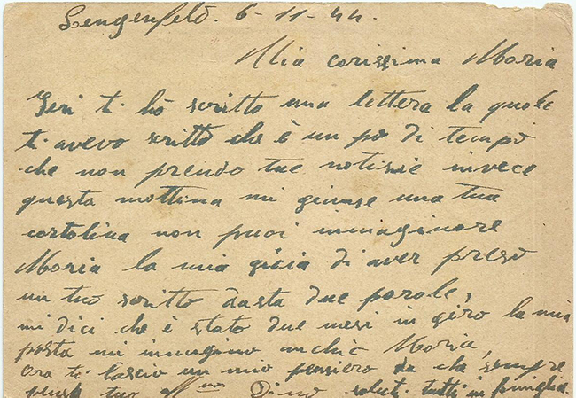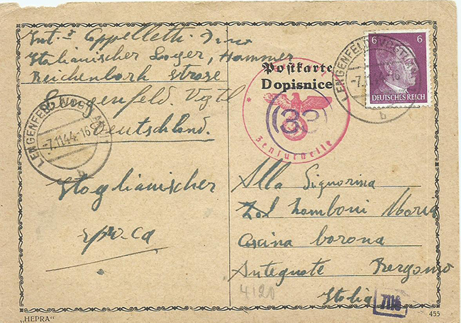 N. 4 - Una cartolina inviata dal campo di concentramento situato a Lengenfeld. Era un campo di concentramento satellite, ovvero dipendente dal campo di concentramento di Flossembreg, nelle immediate vicinanze della Cechia (ex Cecoslovacchia).