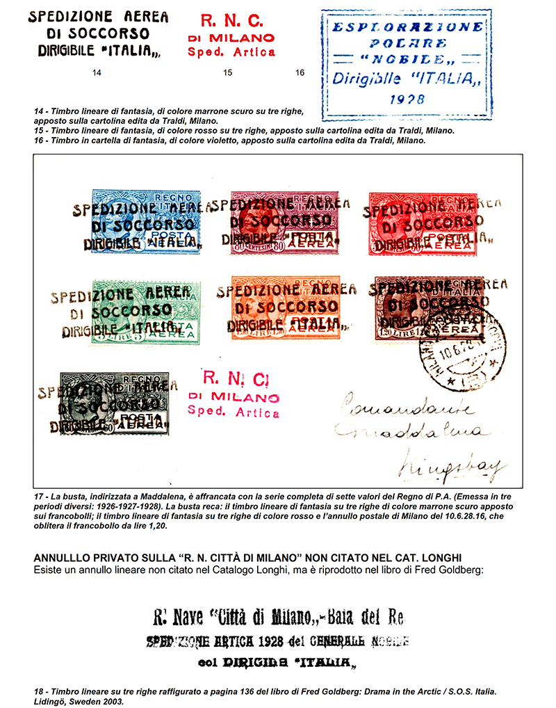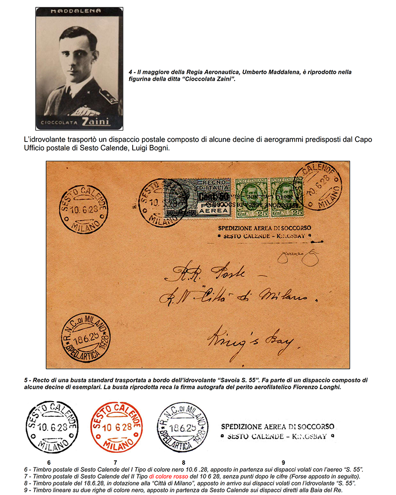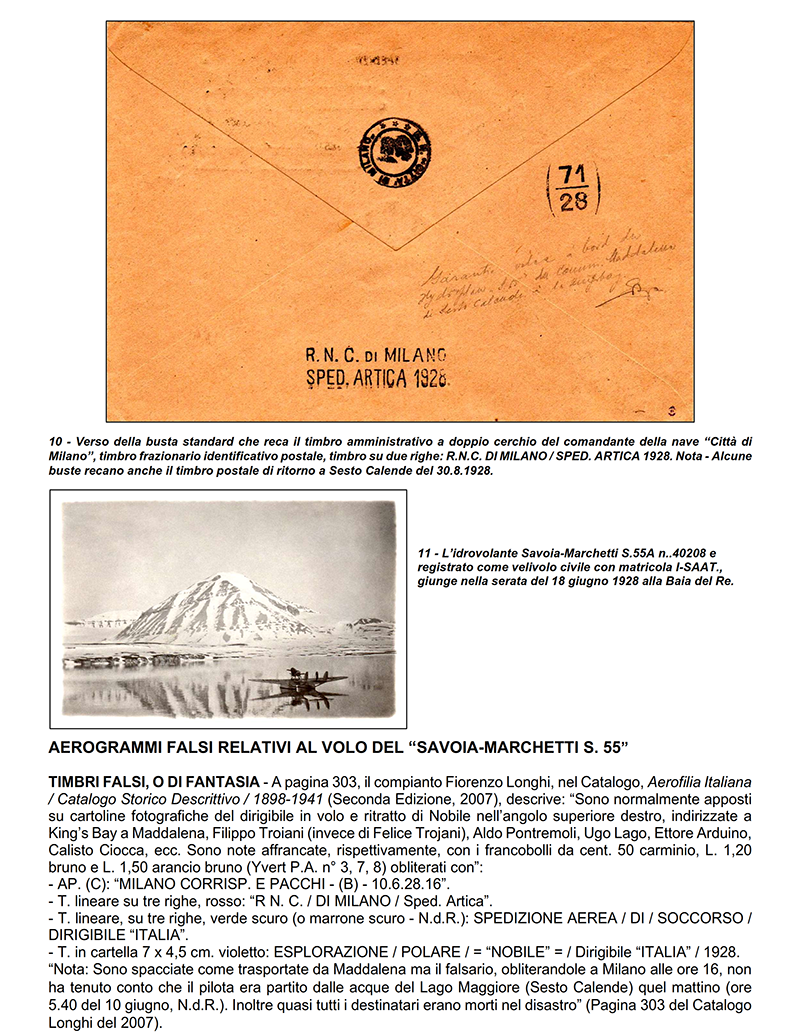 BUSTE E CARTOLINE ORIGINALI E FALSE TRASPORTATE DAGLI IDROVOLANTI DI SOCCORSO AEREO ITALANO DEL 1928