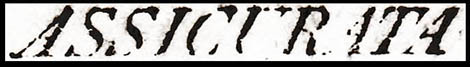 e due bolli accessori con dicitura, in stampatello inclinato, Affrancata e Assicurata (fig. 5, 6):