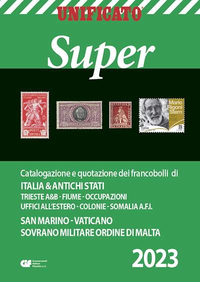 UNIFICATO SUPER 2023 - Catalogazione e quotazione dei francobolli di ITALIA & ANTICHI STATI - TRIESTE A&B - FIUME - OCCUPAZIONI - UFFICI ALL'ESTERO - COLONIE - SOMALIA A.F.I. - SAN MARINO - VATICANO - SOVRANO MILITARE ORDINE DI MALTA