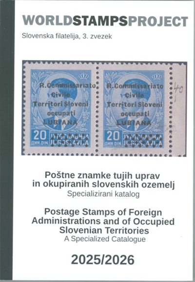 È stato pubblicato il catalogo "Francobolli di amministrazioni straniere e territori sloveni occupati", dal "World Stamps Project (WSP)" e curato da Andrej Verbič, insieme ai suoi colleghi. Devo dire che per la prima volta nella storia, la filatelia slovena ha ricevuto un catalogo che copre finalmente in modo completo e approfondito l'intero territorio dell'attuale Slovenia nel periodo 1941-45. Nel catalogo troverete tutto ciò di cui avete bisogno per la vostra collezione tradizionale o storico-postale: i nomi degli uffici postali (in italiano o tedesco o ungherese), le tariffe postali, un elenco di tutti i francobolli utilizzati durante questo periodo e un elenco degli errori noti, oltre naturalmente a un listino prezzi. Devo qui elogiare l'autore per aver sottolineato la differenza tra un francobollo utilizzato in Italia o Germania o Ungheria con la sigla "☉" e uno annullato con un bollo utilizzato in Slovenia d'oggi, contrassegnato con la sigla "☉", ovvero annullato con un bollo "sloveno".