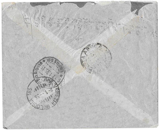 -1935 - LETTERA in POSTA AEREA da Venezia per Capetown in Sud Africa presso un primo Hotel, successivamente rispedito al Mount Nelson Hotel sempre di Capetown da cui è rispedito in Patria a Venezia alla Zattere 1402 (Quartiere bene centrale delle famiglia nobili).