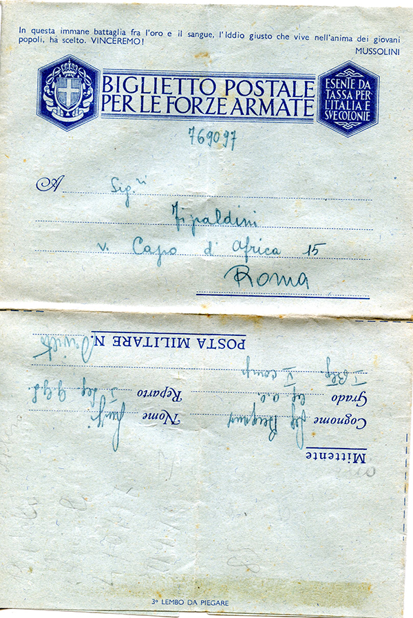 il fronte per il sud Italia rallentò notevolmente la posta, la lettera infatti è arrivata dopo 10 mesi |
