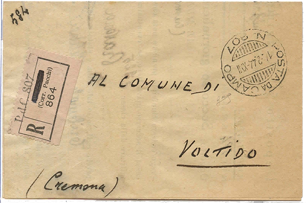 £ 0,05 (lettera £ 0,25 x 2 raccomandata £.1,25), assolta con francobolli per pacchi postali |