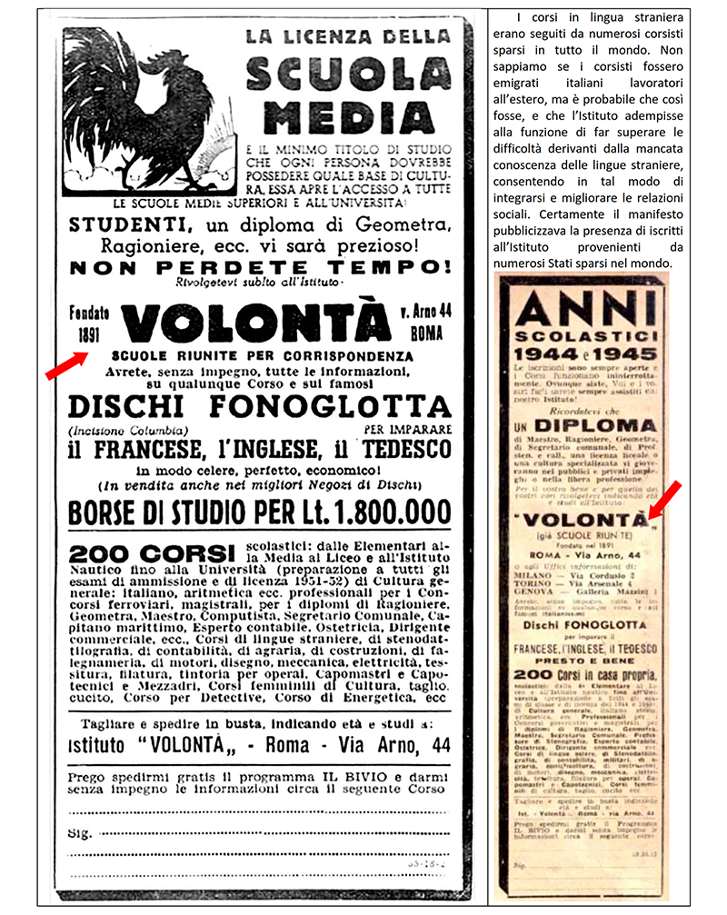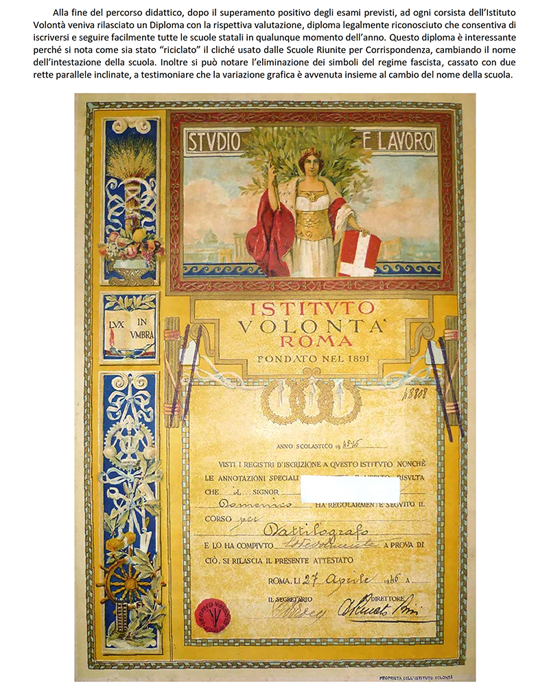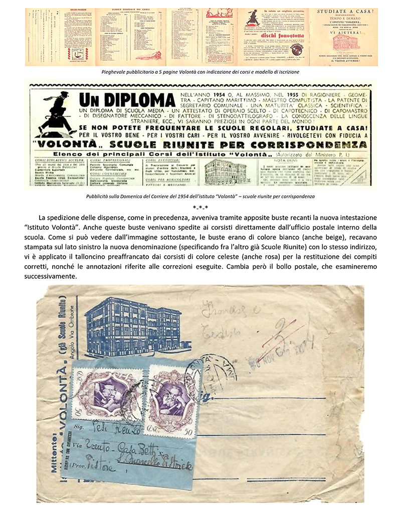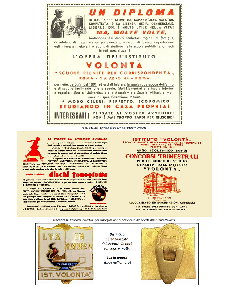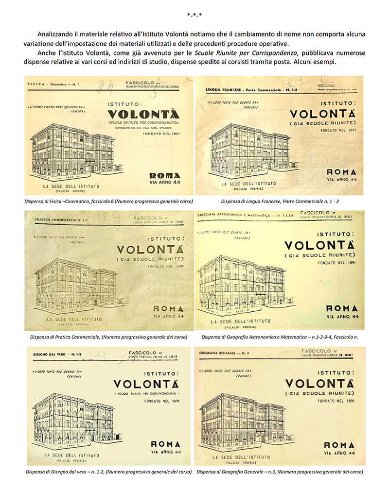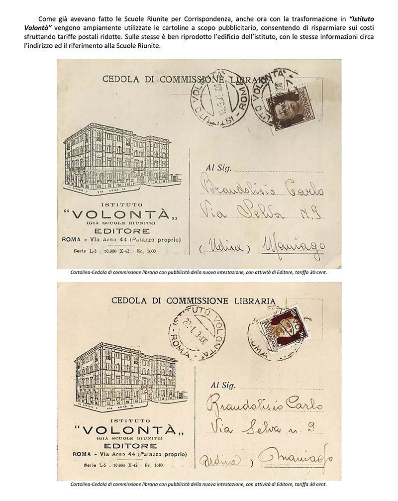 LE «SCUOLE RIUNITE PER CORRISPONDENZA» dal 1942 «ISTITUTO VOLONTA'» - ROMA