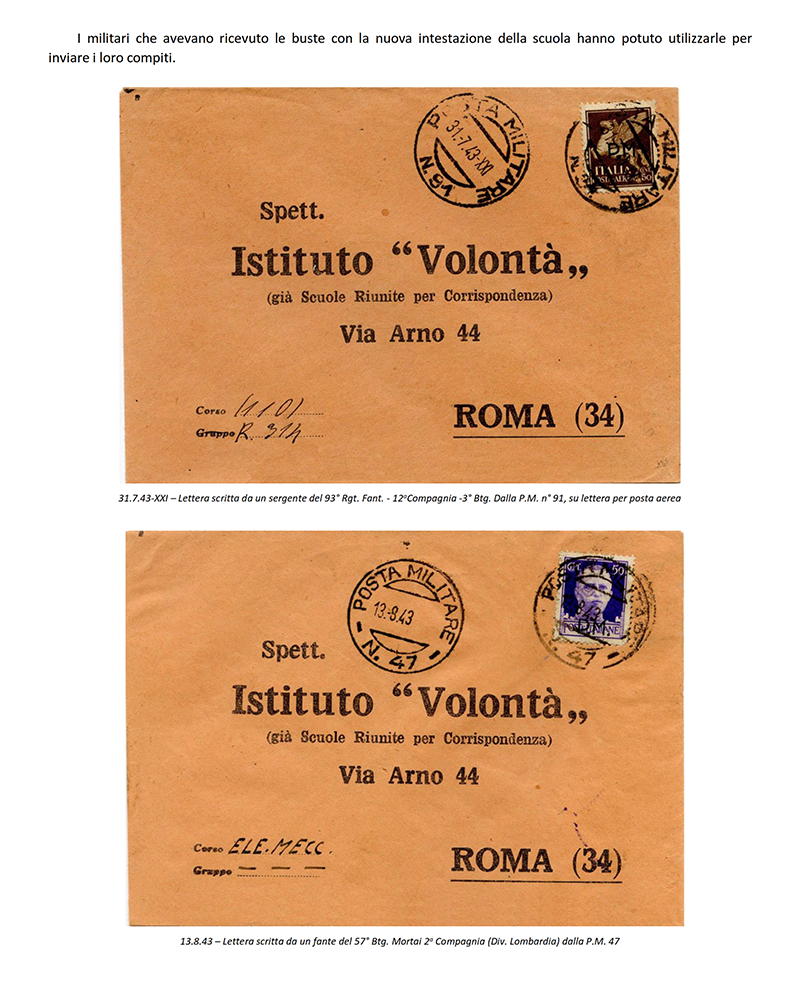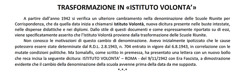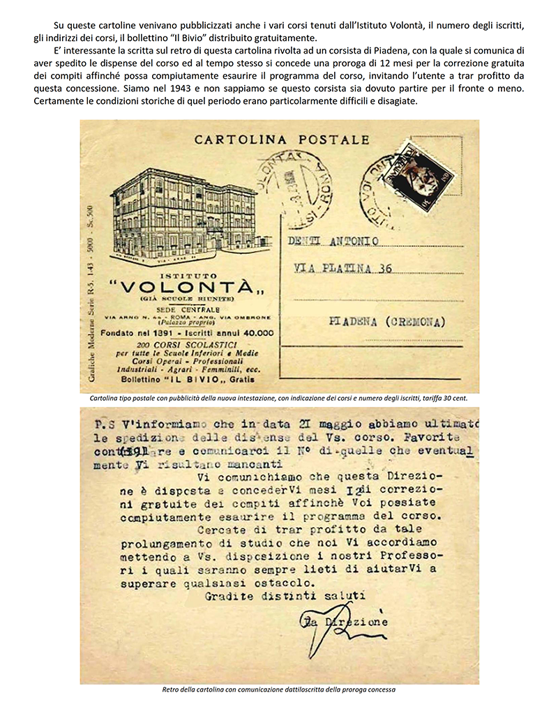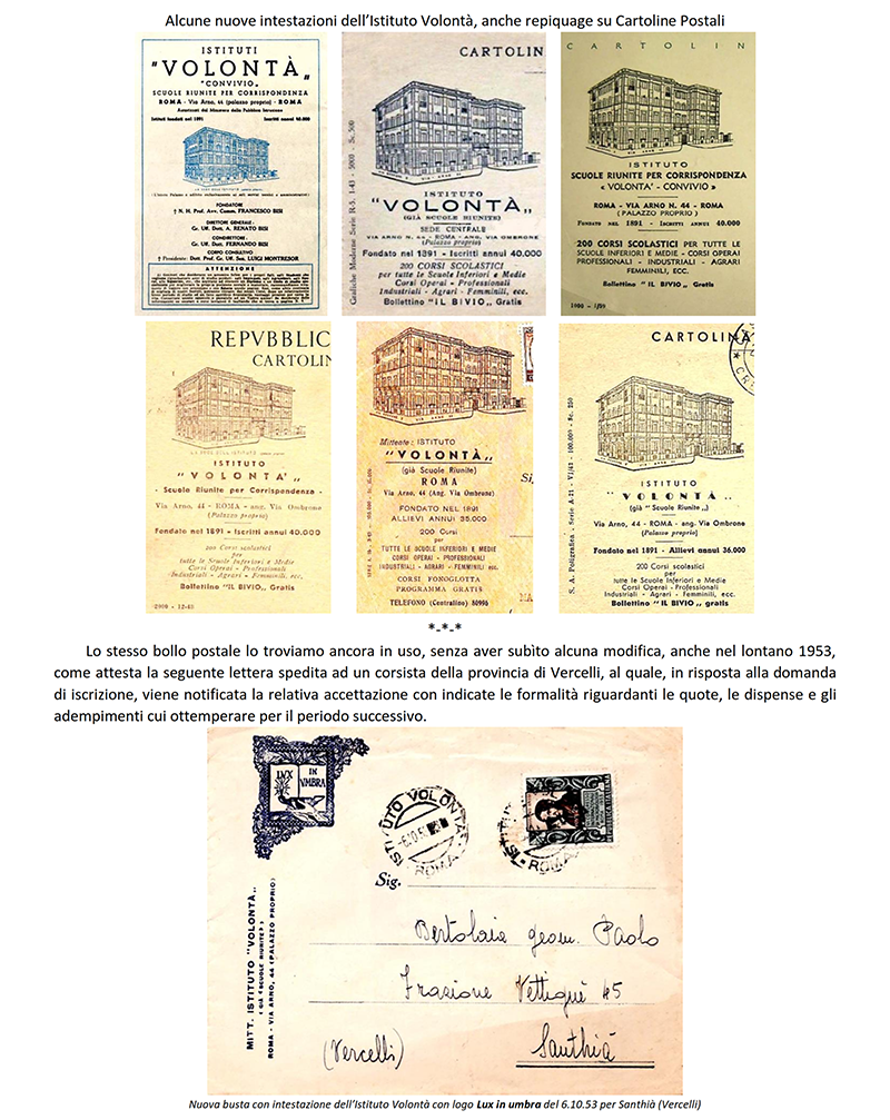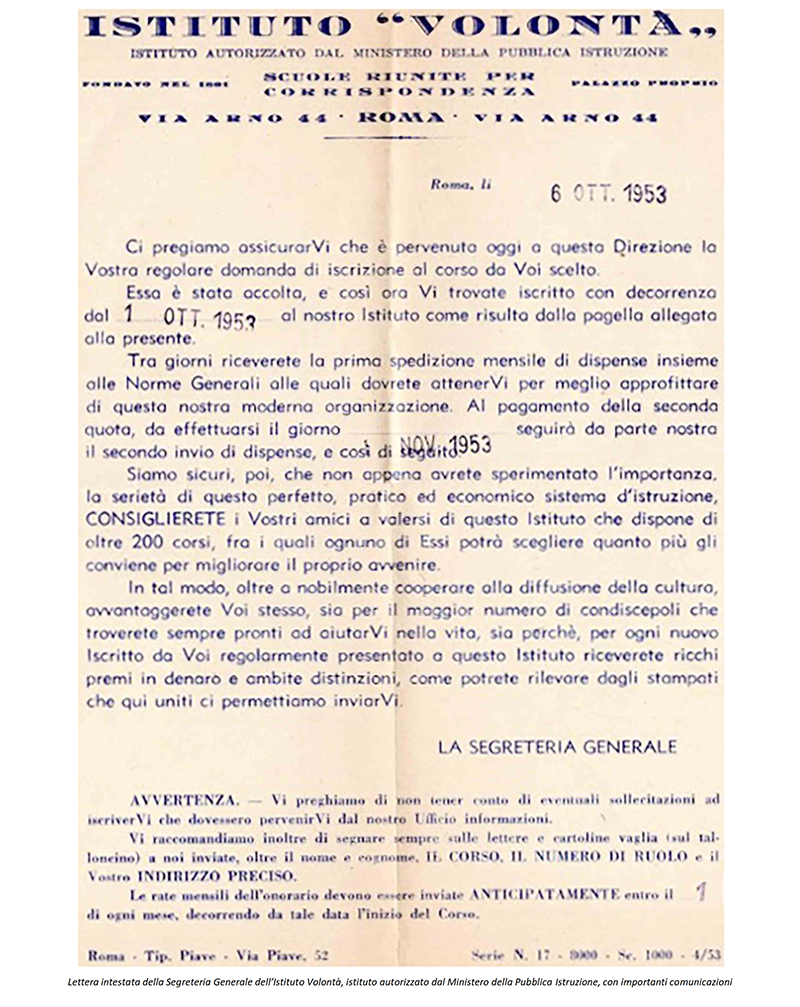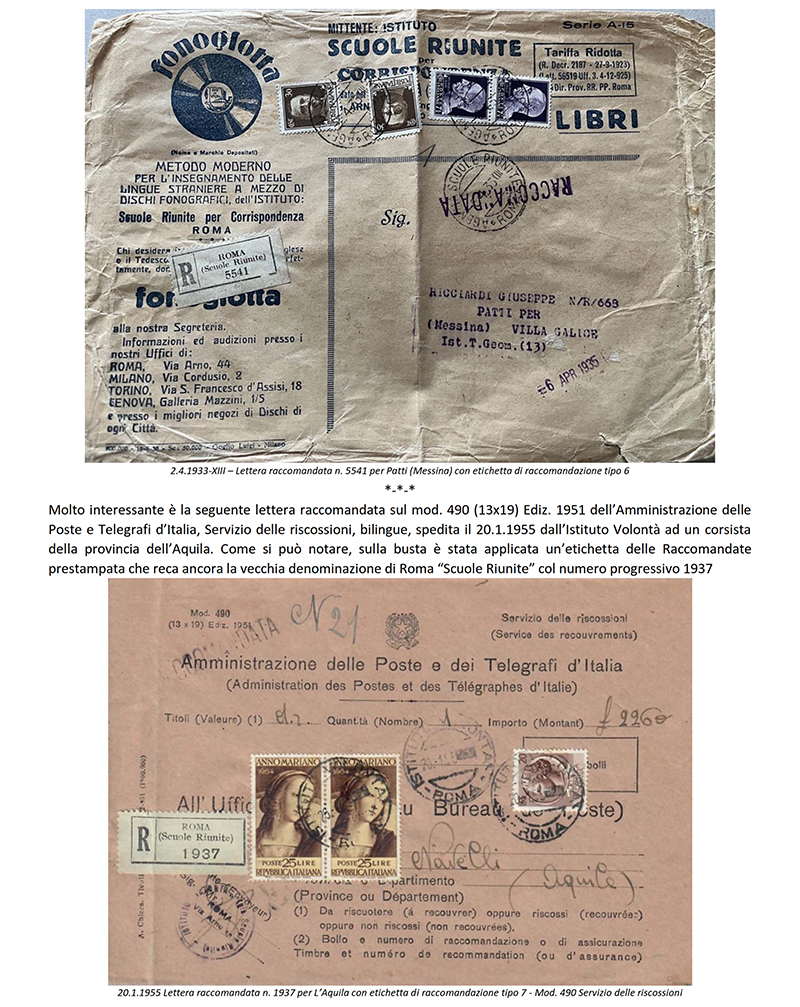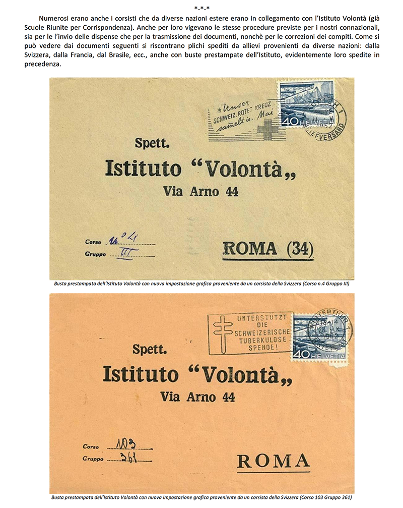 LE «SCUOLE RIUNITE PER CORRISPONDENZA» dal 1942 «ISTITUTO VOLONTA'» - ROMA