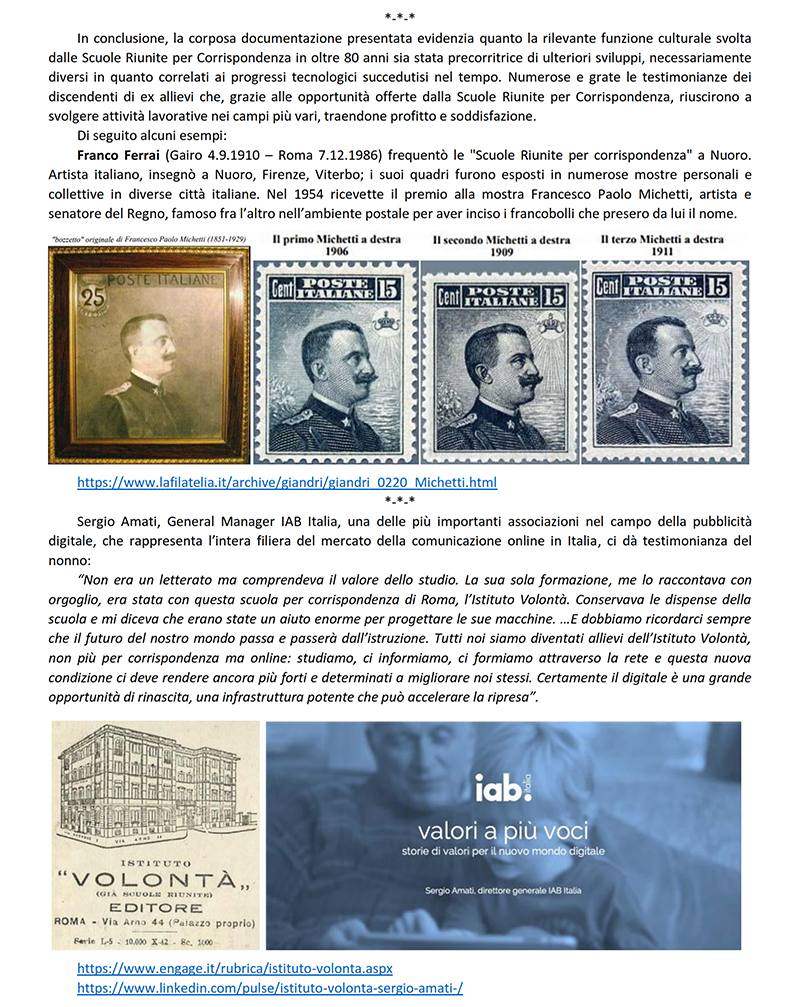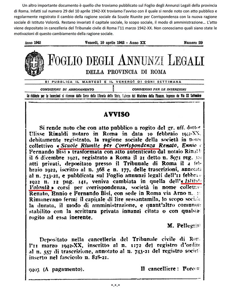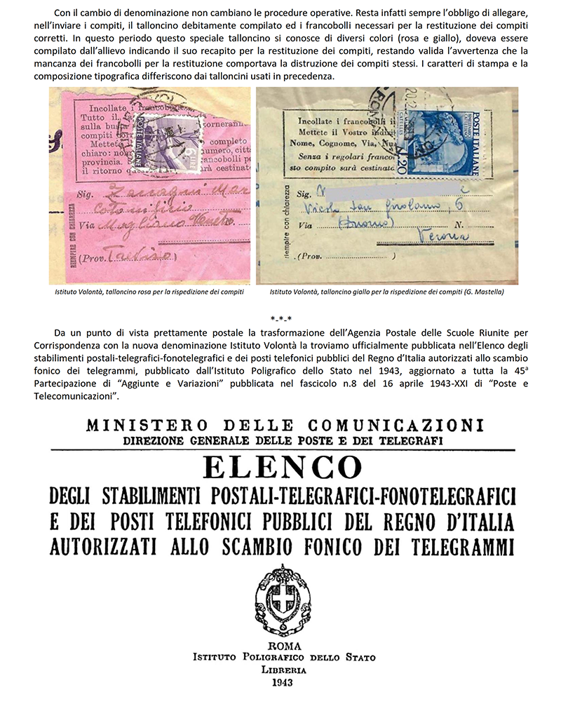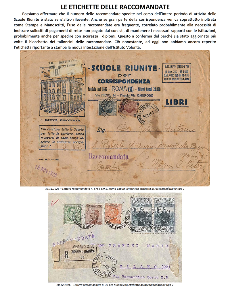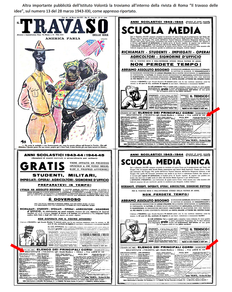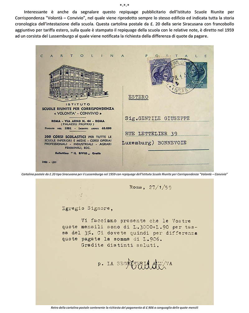 LE «SCUOLE RIUNITE PER CORRISPONDENZA» dal 1942 «ISTITUTO VOLONTA'» - ROMA
