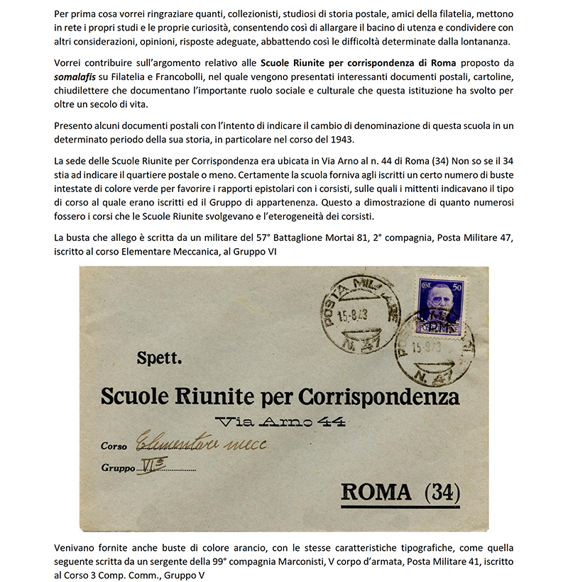 LE SCUOLE RIUNITE PER CORRISPONDENZA - ROMA