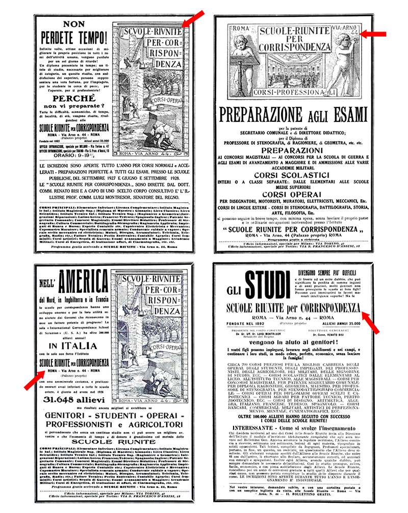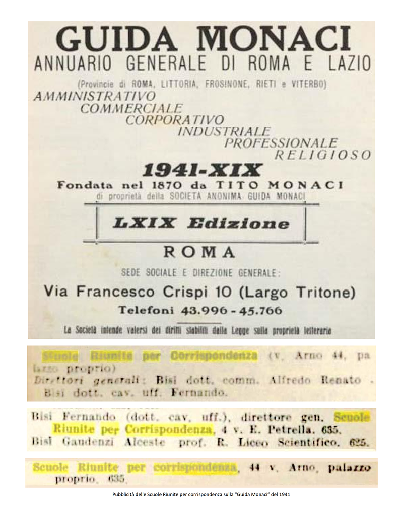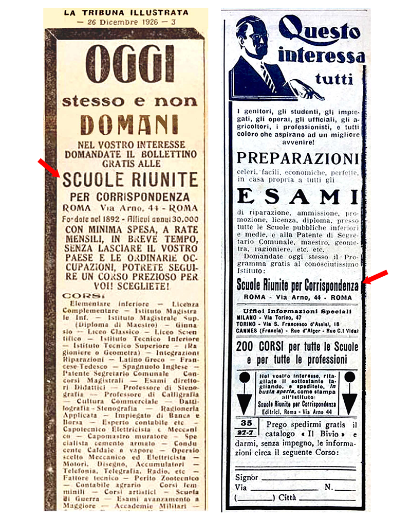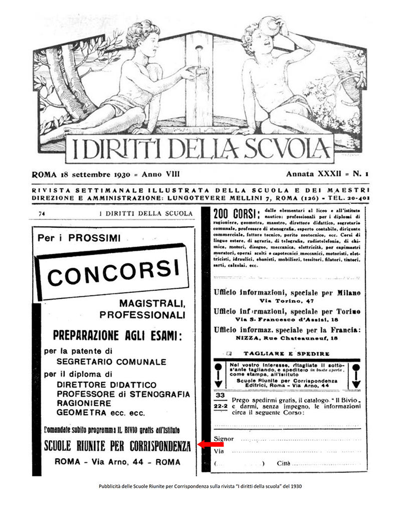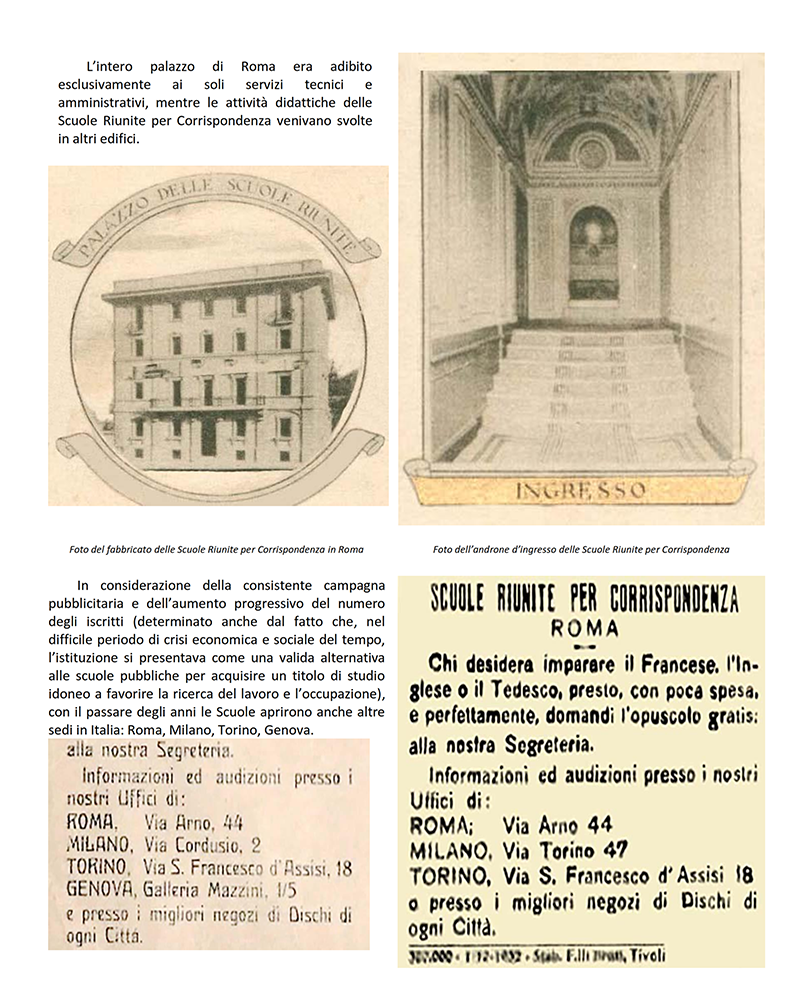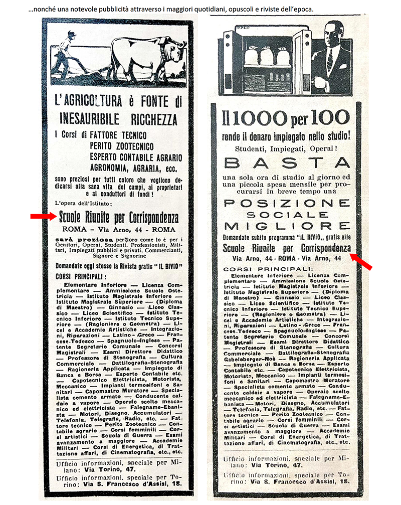 LE «SCUOLE RIUNITE PER CORRISPONDENZA» dal 1942 «ISTITUTO VOLONTA'» - ROMA