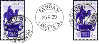 Figura 8 – annullo 15 bis di Tobruch in rosso nel quale la parola “CIRENAICA” trova giusta