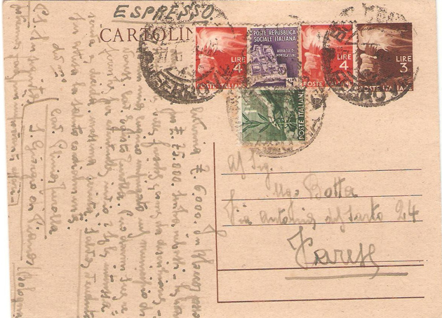 Il valore repubblichino venne strettamente affiacato ed in parte ricoperto dei due francobolli da 4 lire in modo da sfuggire al controllo del verificatore postale. |