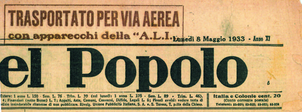 LA GAZZETTA DEL POPOLO, Edizione Meridiana, Maggio 1933, trasportato con ALI - Avio Linee