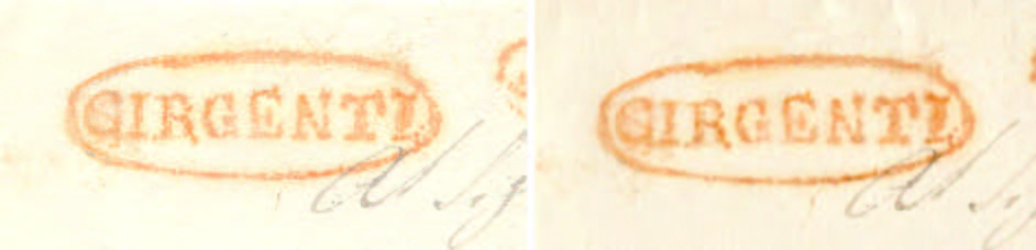 9) È noto che l’uso di tale colore nell’officina di Posta di Girgenti si estese sino al 1853; successivamente venne usato solo inchiostro nero.