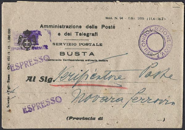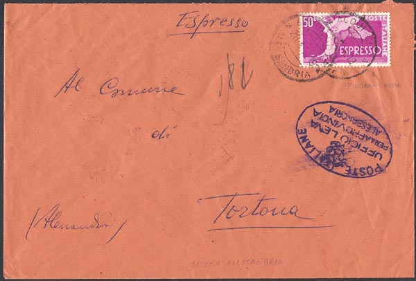 Invito i lettori de " il postalista " a cercare nelle loro collezioni buste di questo tipo, sia in P.O. sia come raccomandate. Si distinguono per avere l'applicazione della tariffa espresso in segnatasse del periodo, inoltre l'oggetto dovrebbe riportare una numerazione sul fronte impressa dall'ufficio postale di destinazione e un bollo a data al retro con la dicitura espresso. Sarebbe cosa gradita che si mostrassero on-line su il postalista.