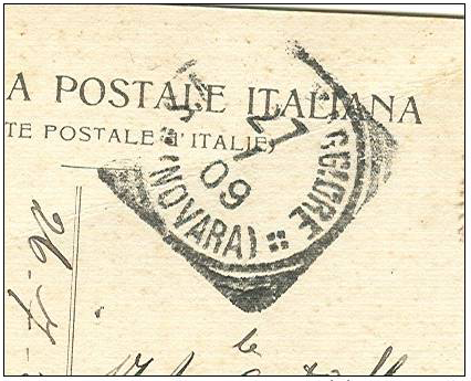 Bel primo ritrovamento di Luigi Teti che ha rinvenuto il tondo-riquadrato di S.Maria Maggiore di tipo G, mentre il catalogo "Il Nuovo Gaggero" segnala l'esistenza del solo tipo GO in due tipologie diverse. Santa Maria Maggiore è un comune italiano di 1.290 abitanti (censimento 2021), ne contava 1.163 nel 1911. Oggi è in provincia del Verbano-Cusio-Ossola, situata nell'apice settentrionale del Piemonte, tra il Canton Ticino (Svizzera) e il Lago Maggiore. E' una affermata località turistica montana. Il nuovo annullo potrà essere inserito a catalogo come: NO - S.MARIA MAGGIORE - tipo G . 1909 05-11-2025