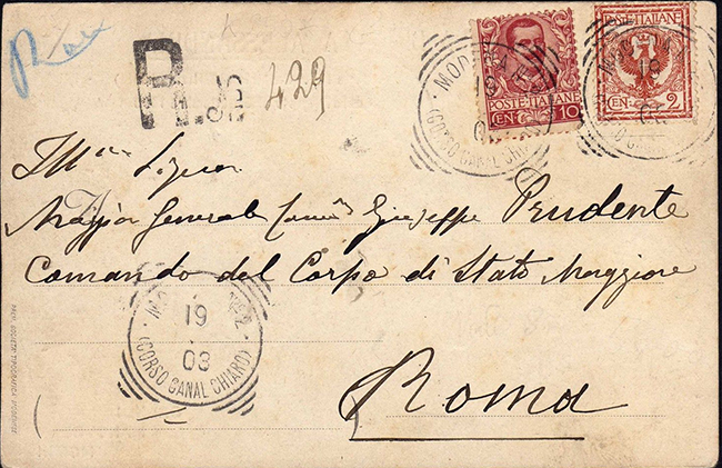 Riferimenti storico-postali di Alcide SORTINO MODENA N: 2 - CORSO CANALE CHIARO