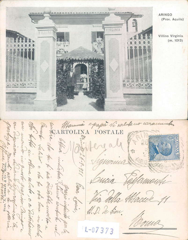 Prima segnalazione di un annullo riportato dal catalogo del Gaggero e non ancora visto. Ritrovamento di Luigi Teti: Aringo (AQ) del 26.9.1921. La frazione era una delle oltre 20 frazioni del comune di Montereale, aveva 420 abitanti e ne distava 5 km come riportato nel censimento del 1901. Oggi sono presenti circa 50 abitanti e l'ufficio postale non esiste piu'. Complimenti a Luigi per la pazienza nel ricercare annulli su internet.