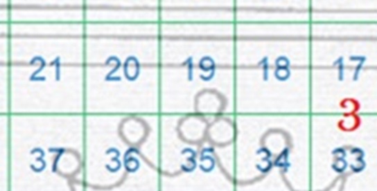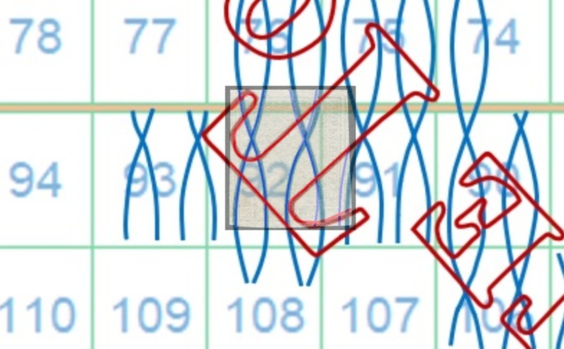 La configurazione della filigrana del valore da 4 crazie è AS-BD, si intravede il piede posteriore del secondo carattere 'R' della dicitura e risaliamo ancora una volta alla 92 per la posizione occupata dal francobollo nel quadro di stampa, come dimostrato nella figura 17 che segue, dove riportiamo il risultato del confronto con la tavola di riferimento S05.