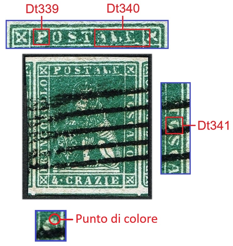 Proseguiamo nella descrizione delle varietà dello stereotipo della vignetta dei francobolli granducali di Toscana con la discussione di altri quattro casi. Porremo particolare attenzione alla varietà C16 (D18) descrivendone 2 casi di Posizioni Costanti su filigrana del Primo Tipo. Ci rendiamo perfettamente conto di quanto il tipo di articolo che presentiamo possa risultare ostico alla maggior parte dei lettori, dato l'altissimo livello di specializzazione che implica rispetto alla conoscenza dei francobolli toscani. Si tratta altresì di spaccati di risultanze di studi da noi compiuti su questo materiale, che confluiranno un giorno in uno o più volumi riassuntivi della materia.