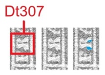 Questa varietà mostra anche una caratteristica deformazione del carattere 'R' della Dicitura 1, come mostrato in figura 18 (Dt307).