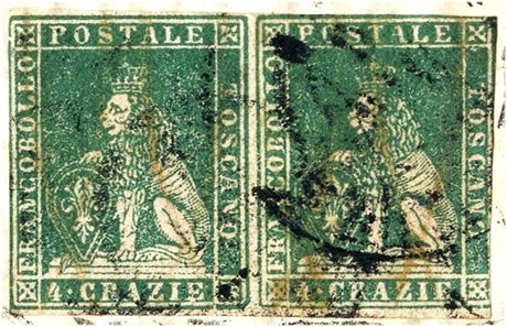 Simili considerazioni valgono per la coppia orizzontale del valore da 4 crazie su filigrana del Secondo Tipo che riportiamo nella figura 27 che segue.
