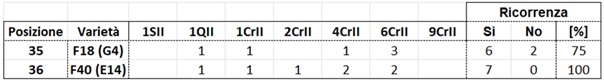 Abbiamo descritto le varietà F18 (G4) e F40 (E14) dei francobolli granducali di Toscana, evidenziando i dettagli che le caratterizzano. Nell'ambito dei francobolli granducali su filigrana del Secondo Tipo, abbiamo mostrato come le varietà suddette ricorrano rispettivamente nelle posizioni 35 e 36 del quadro di stampa, ovvero nel settore sinistro del blocco superiore. Ad oggi sono stati da noi censiti 369 francobolli granducali su filigrana del Secondo Tipo del tipo fil-let, ovvero che presentano nella filigrana, oltre alle tipiche linee ondulate verticali intrecciate, anche tracce dei caratteri della dicitura 'II E RR POSTE TOSCANE', per i quali è quindi possibile determinare con certezza la posizione che questi occupavano nel quadro di stampa dei 240 esemplari. Dei 369, 8 occupano la posizione 35 e di questi 6 sono nella varietà F18 (G4) per una frequenza di ricorrenza del 75%, mentre 7 occupano la posizione 36 e di questi tutti e 7 sono nella varietà F40 (E14), per una frequenza di ricorrenza del 100%. Da notare che la ricorrenza della varietà F18 (G4) nella posizione 35 è provata ad oggi per 4 valori sui 7 emessi e che la F40 (E14) è provata per 5 valori. I dati sono riassunti nella tabella di figura 31.