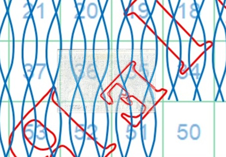 La filigrana della coppia è in configurazione AD-BS e mostra gran parte di uno dei caratteri 'E ' e un piccolo segmento del primo carattere 'R' della scritta 'II E RR POSTE TOSCANE'. Con l'aiuto della tavola di riferimento S07 ricaviamo le posizioni che i francobolli occupavano nel quadro di stampa, ovvero la 35 e la 36, come dimostrato nella figura 41 che segue.