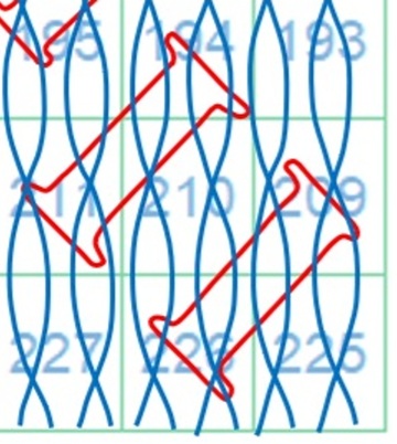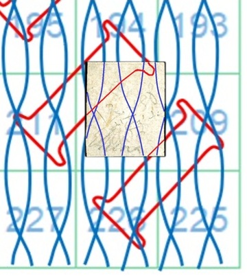 La filigrana del francobollo da 3 Lire è nella configurazione BD-AS e i tratti della dicitura che si osservano appartengono ai caratteri 'II', in particolare alla loro parte centrale. Aiutandoci con la tavola di riferimento S06 possiamo determinare la posizione originaria del francobollo, che risulta giacere nel Terzo Gruppo in basso dei 3 nei quali veniva suddiviso il foglio intero dei 240 esemplari, in particolare la 210, come dimostrato nella composizione grafica di figura 65.