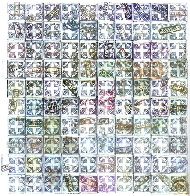 Conclusioni Un dettagliato studio sui materiali e sui processi utilizzati nelle emissioni dei francobolli Granducali di Toscana su filigrana del Primo Tipo, ha consentito di mettere a punto una metodologia di identificazione della posizione degli esemplari sulla tavola di stampa (plattaggio). Stabilita la modalità di impressione dell'esemplare sul foglio filigranato (filigrana al recto, al verso, dritta, capovolta), si fa collimare il frammento di filigrana corona sulla Sovrapposizione di riferimento corrispondente, individuando, in modo univoco, la posizione dell'esemplare nel foglio filigranato. Le posizioni rilevate sono univoche in quanto gli elementi della filigrana corone, apparentemente simili, sono invece alquanto diversi e distinguibili gli uni dagli altri. Sovrapponendo poi la Tavola delle posizioni alla Sovrapposizione con l'esemplare collimato, si rileva il numero (posizione) corrispondente nella matrice di stampa, plattando così l'esemplare. Un risultato importante ed innovativo, ed una metodologia che siamo lieti di proporre come contributo allo studio delle emissioni Granducali di Toscana. © Tiziano Nocentini 2022 © Emilio F. Calcagno 2022 Riferimenti Granducato di Toscana - I francobolli e le varieta' di cliché' - ed. Unificato “Il francobollo da 1/2 tornese del 1860 «Croce di Savoia»” di Enzo De Angelis e Mauro Pecchi https://ileoniditoscana.blogspot.com/?m=1