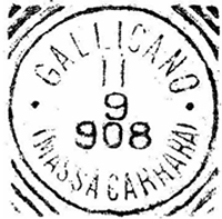 di Gallicano che riproduce le fattezze dei tondo-riquadrati di uso postale.